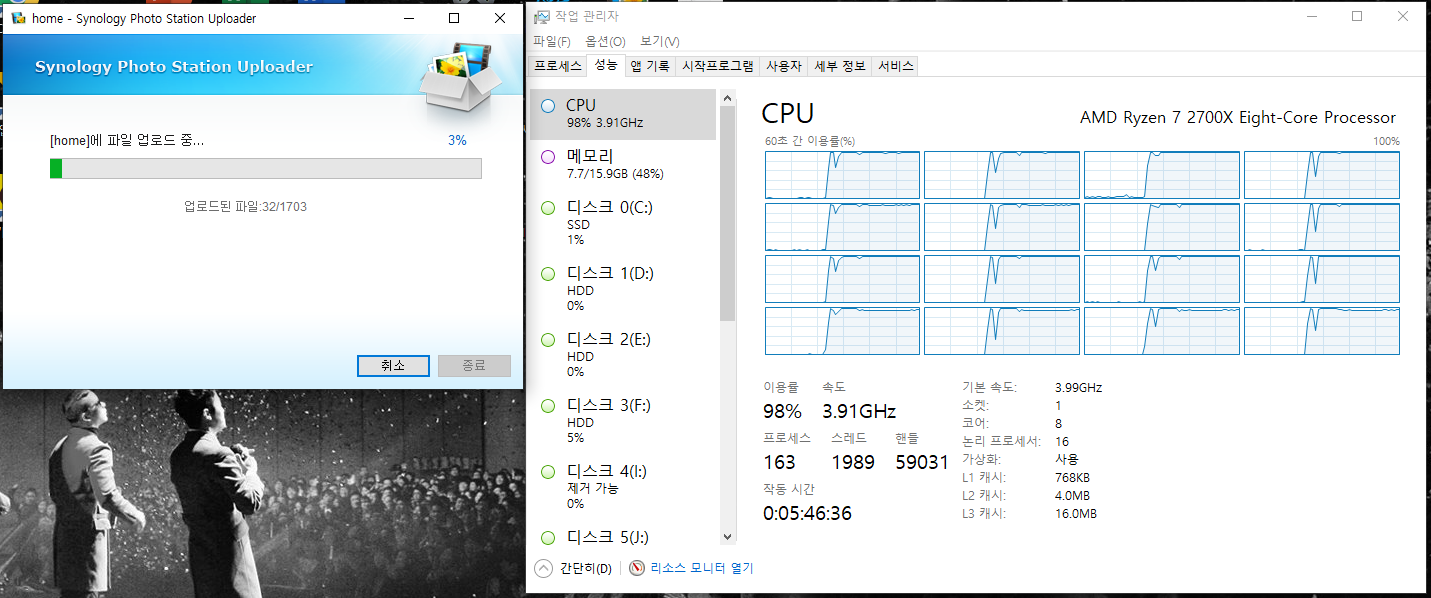 NAS에서 인덱싱(썸네일화) 작업도 동시에 수행하는데 J시리즈의 성능 한계 때문에 작업 자체가 엄~청 느리다