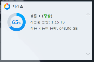 - 현재 NAS에는 2TB 하드가 장착되어 있고 실제 크기는 1.1TB 정도를 사용하고 있다.