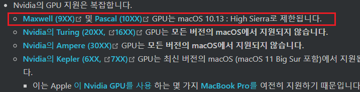 모하비, 카탈리나 등 상위 버전에선 엔비디아 웹 드라이버를 지원하지 않아