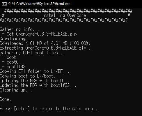 - 설치 메뉴얼은 OpenCore의 install 가이드를 따른다.