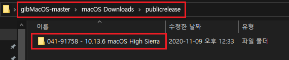 - gibMacOS 하위의 publicrelease 디렉토리에서 다운로드된 파일 확인