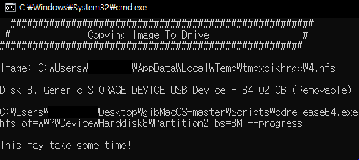 - 디스크 설정이 완료되면 gibMacOS로 다운 받았던 하이시에라 이미지를 가져와야함.