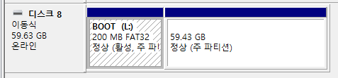 - diskpart 유틸이 실행되고 포맷이 진행되면서 디스크가 MBR 방식으로 잡힘