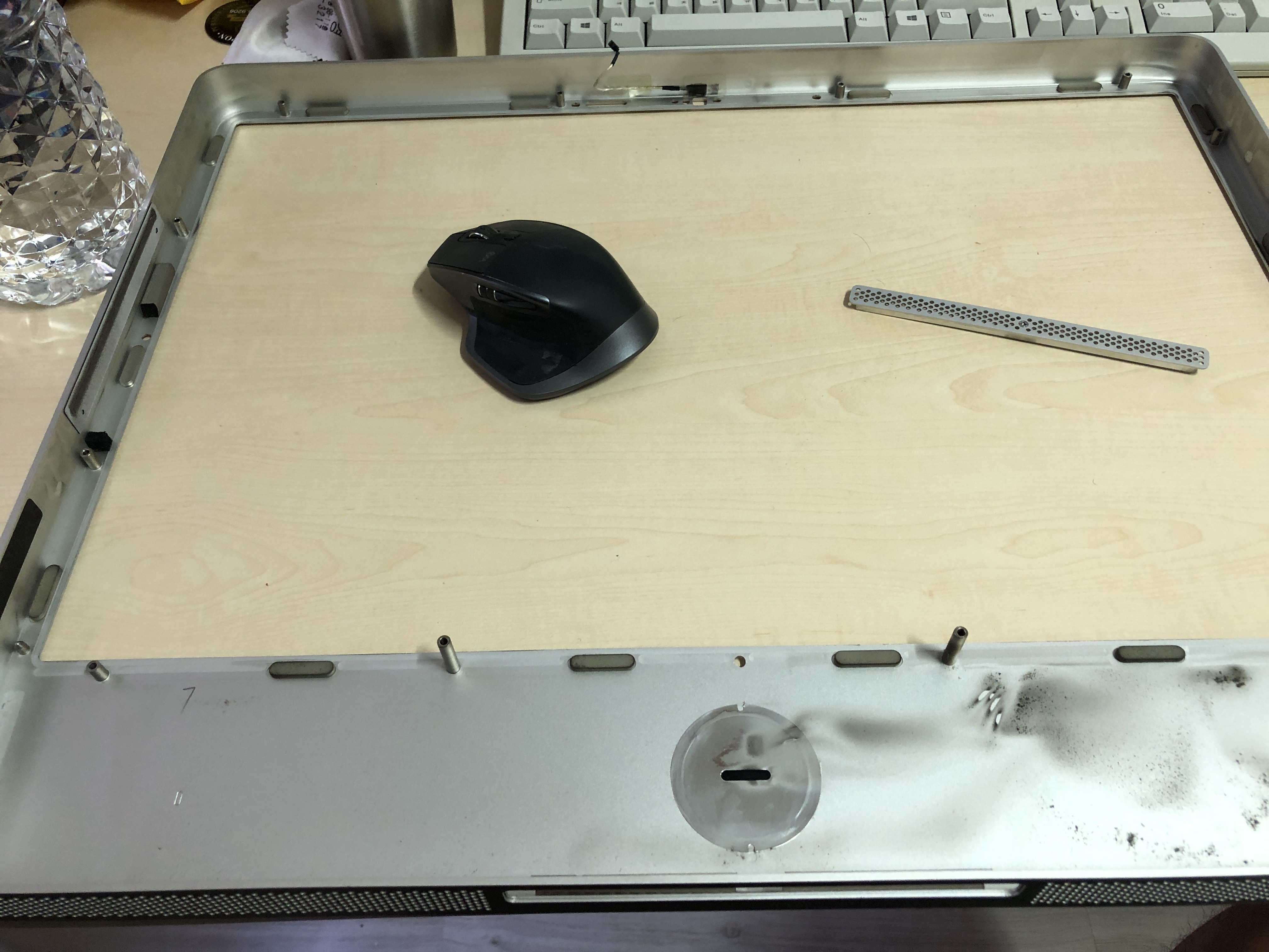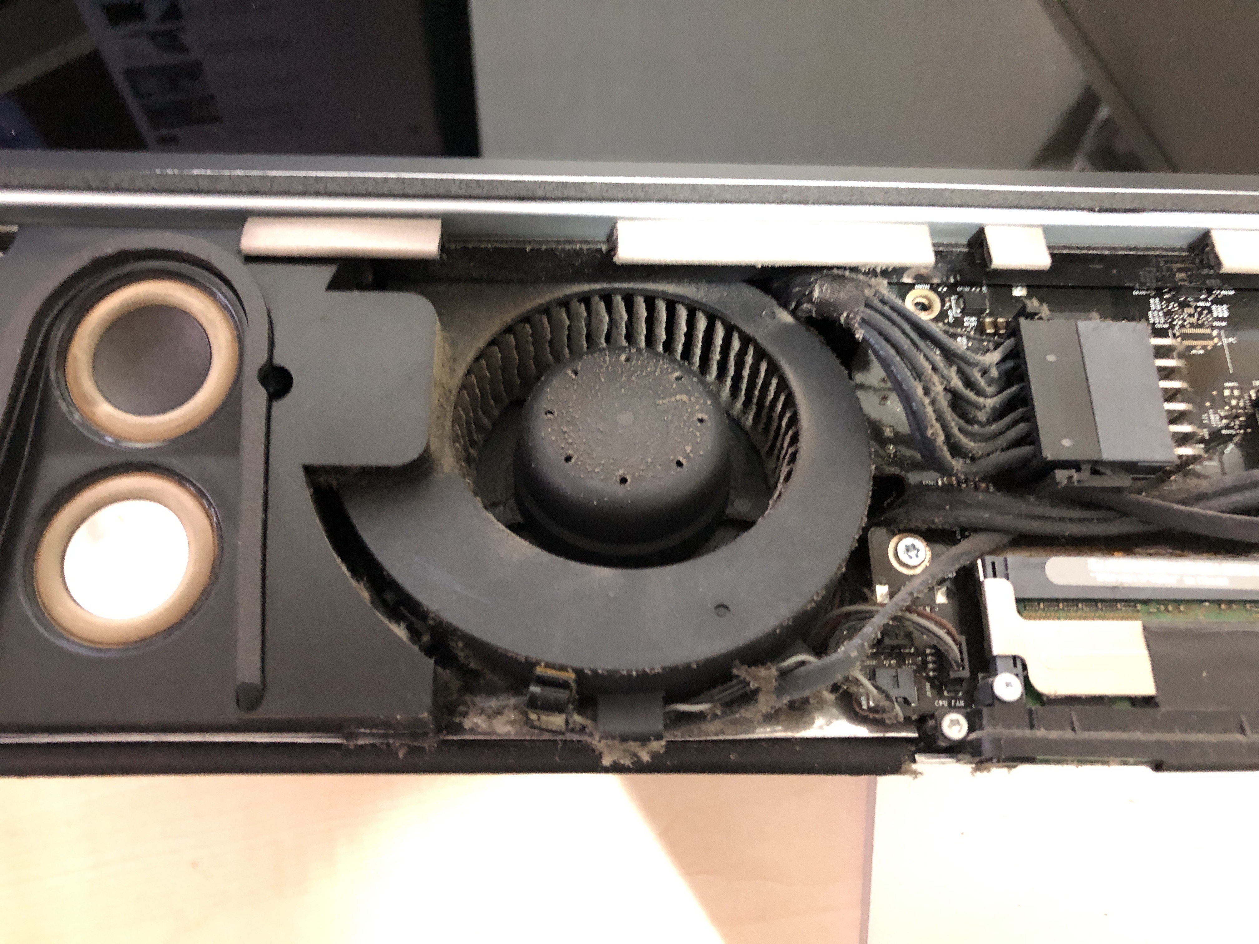 처음엔 저 상태에서 에어건만 뿌려주고 재조립하려고 했는데 먼지 상태가 심각해서 로직보드를 다 들어내기로 했다 : (