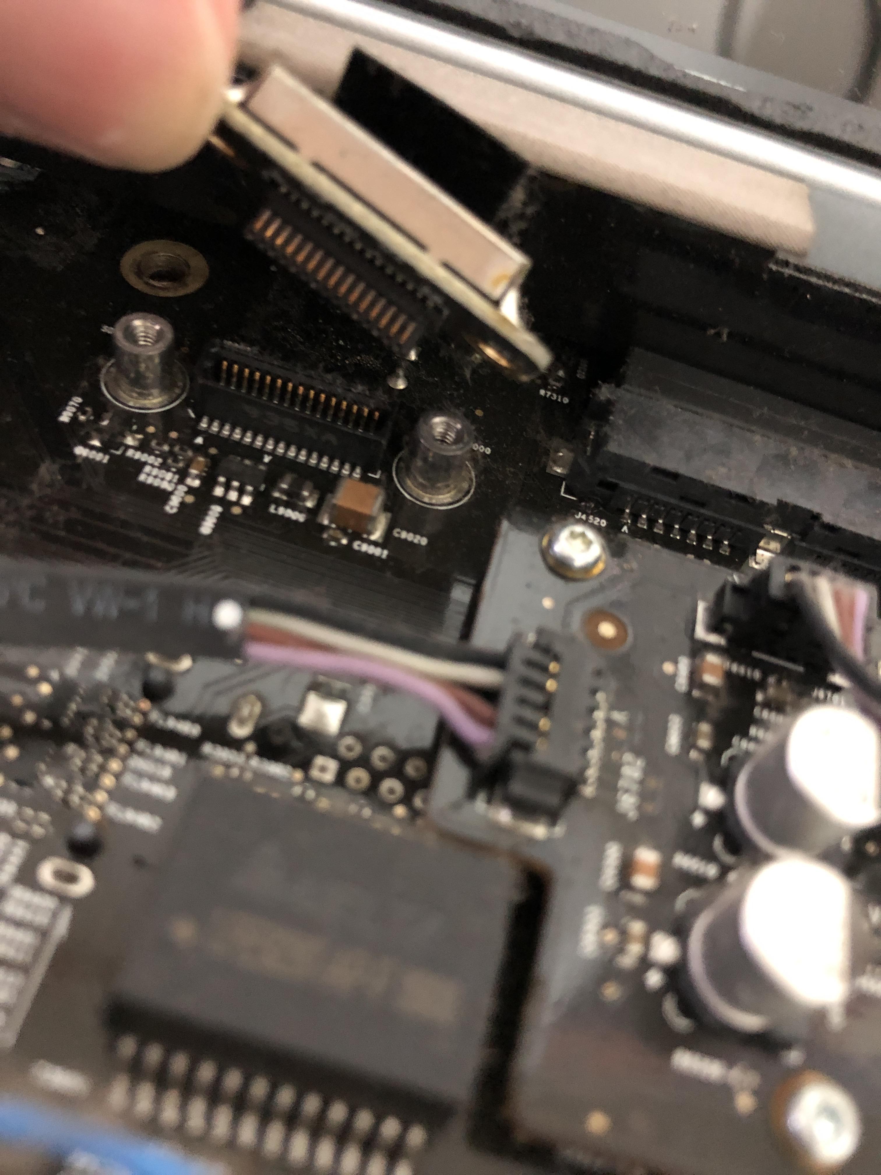 케이블이 끊어지지않게 살짝 들어올리고 lcd 커넥터(?)와 파워 케이블을 분리시켜준다.