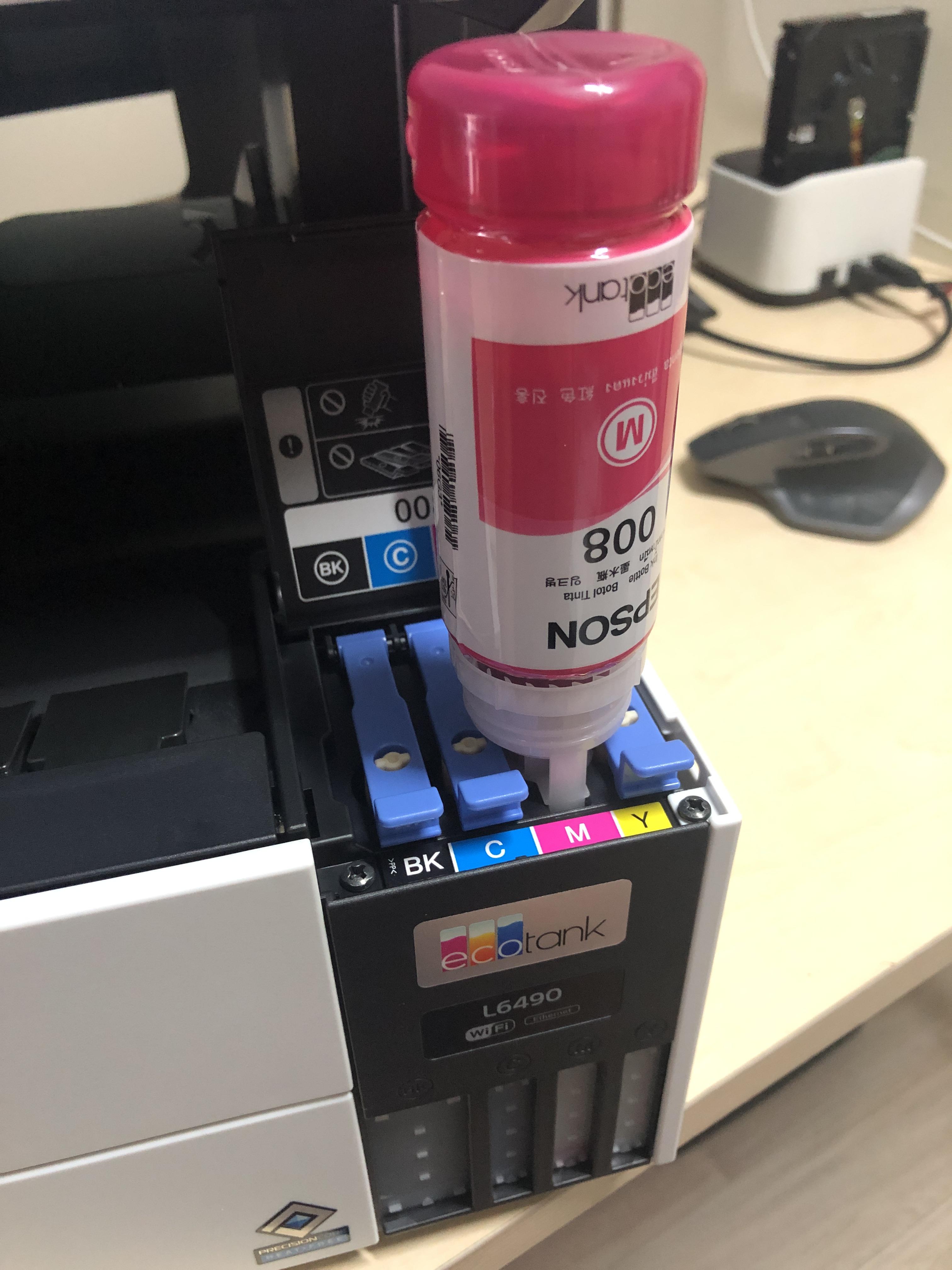 같이 제공되는 잉크는 용량 전부가 들어가진 않는다. 살짝 남긴하는데 나중에 다시 써야할듯.