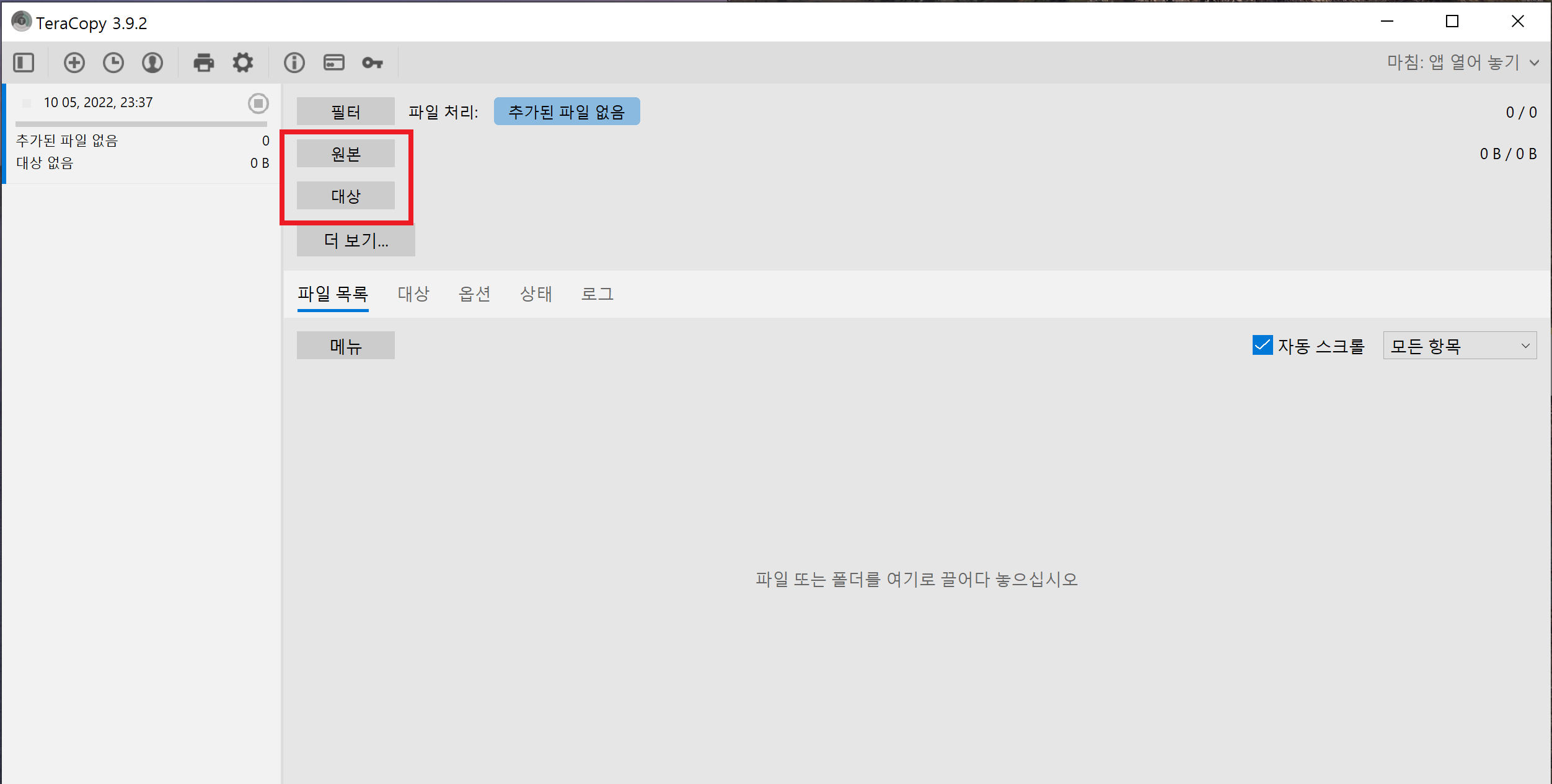 프로그램을 실행했으면 원본(복사할 파일)과 대상(복사될 곳)를 지정해주자.
