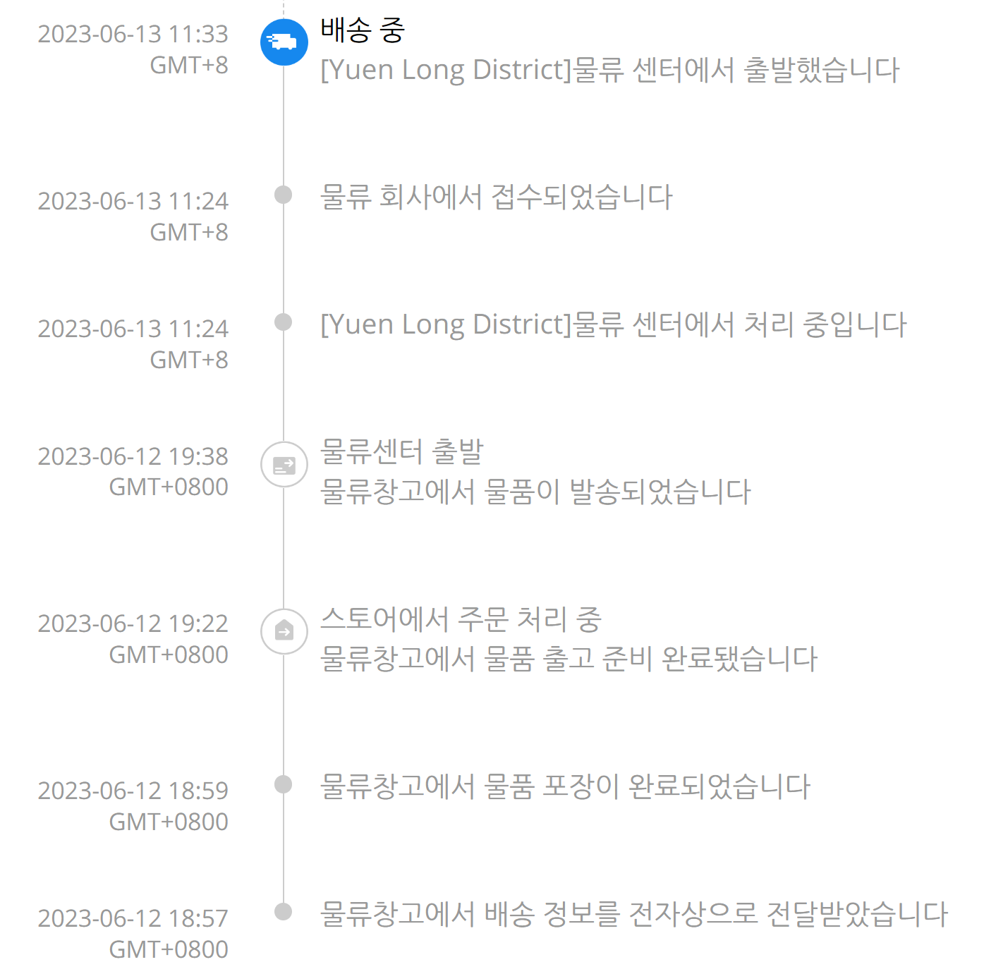 몇시간 뒤 다시 확인해보니 배송중으로 뜬다.