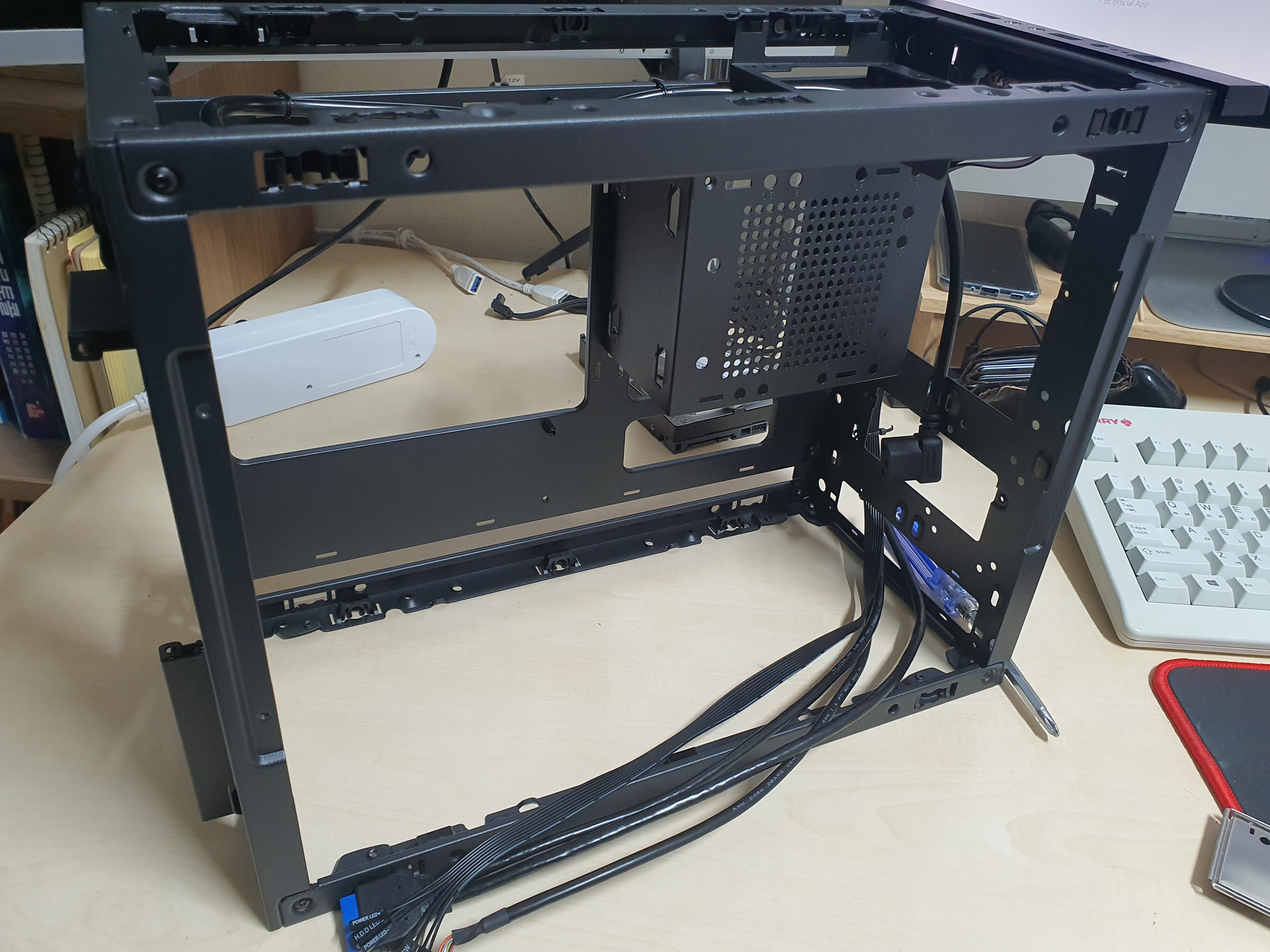 추가) .. 나중에 이건 아니다 싶어서 하드 떼고 120 팬을 달아주었다. 여분의 SSD 슬롯에다가 비슷한 용량의 SSD라도 맞춰줄 생각이다.