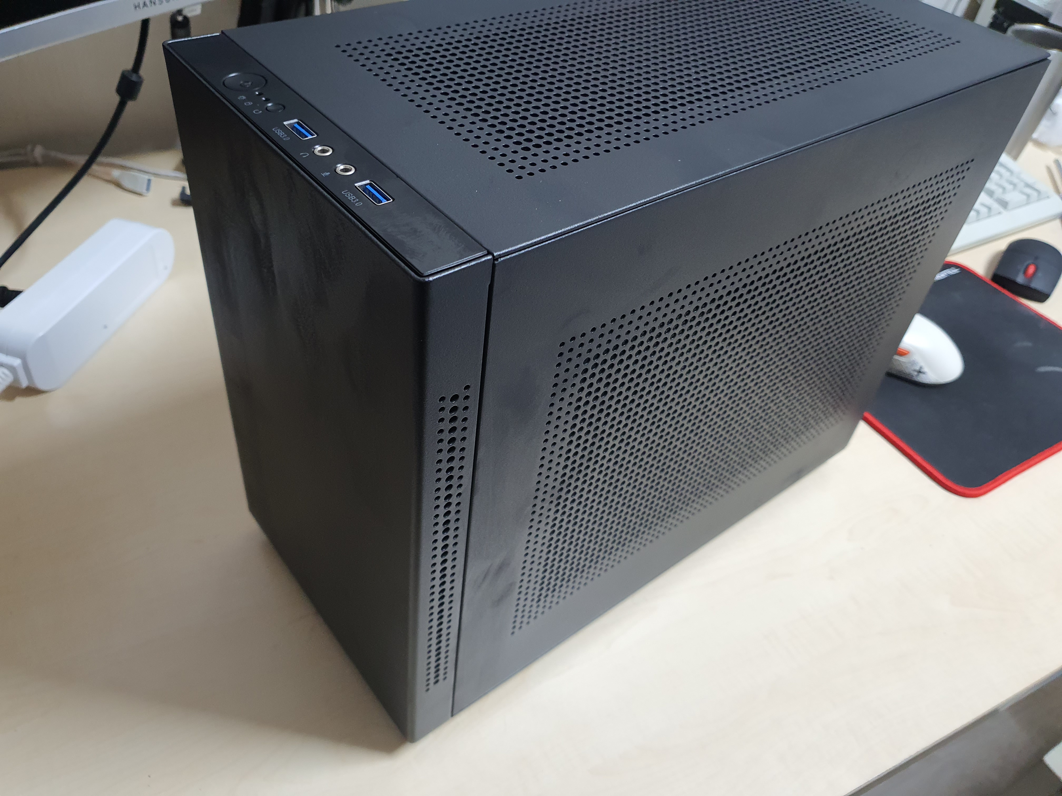 희생해야 할 부분이 약간 있지만 만족하는 케이스다. SFF만큼은 아니지만 귀엽고 작고 딴딴해 보인다. 발 올려놔도 안 휠 듯하고 무채색의 스타일도 나름 괜찮다.