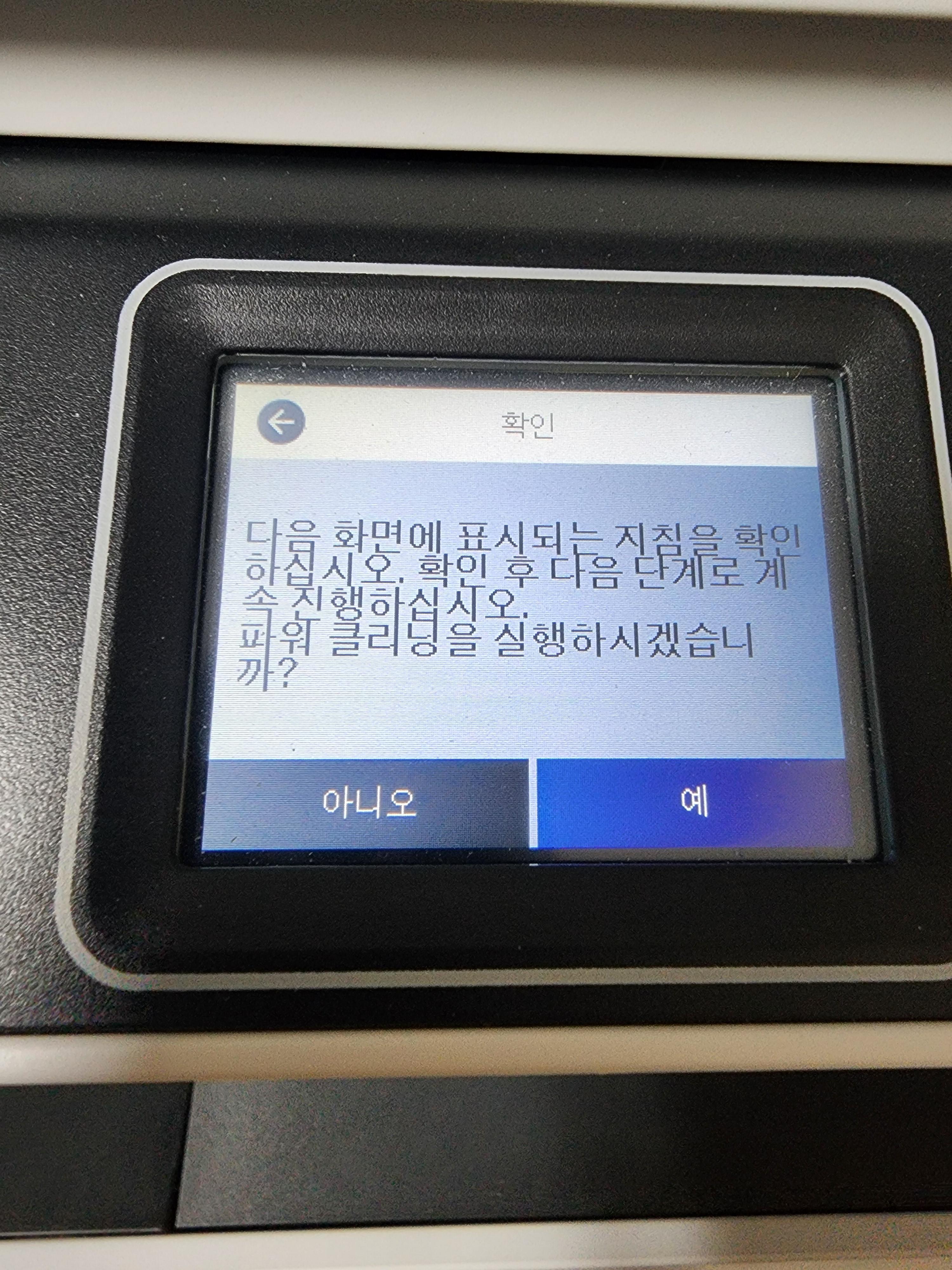 그래도 여전히 출력물에 문제가 있다면 그제야 파워 클리닝 1회 진행하라고 하는 데