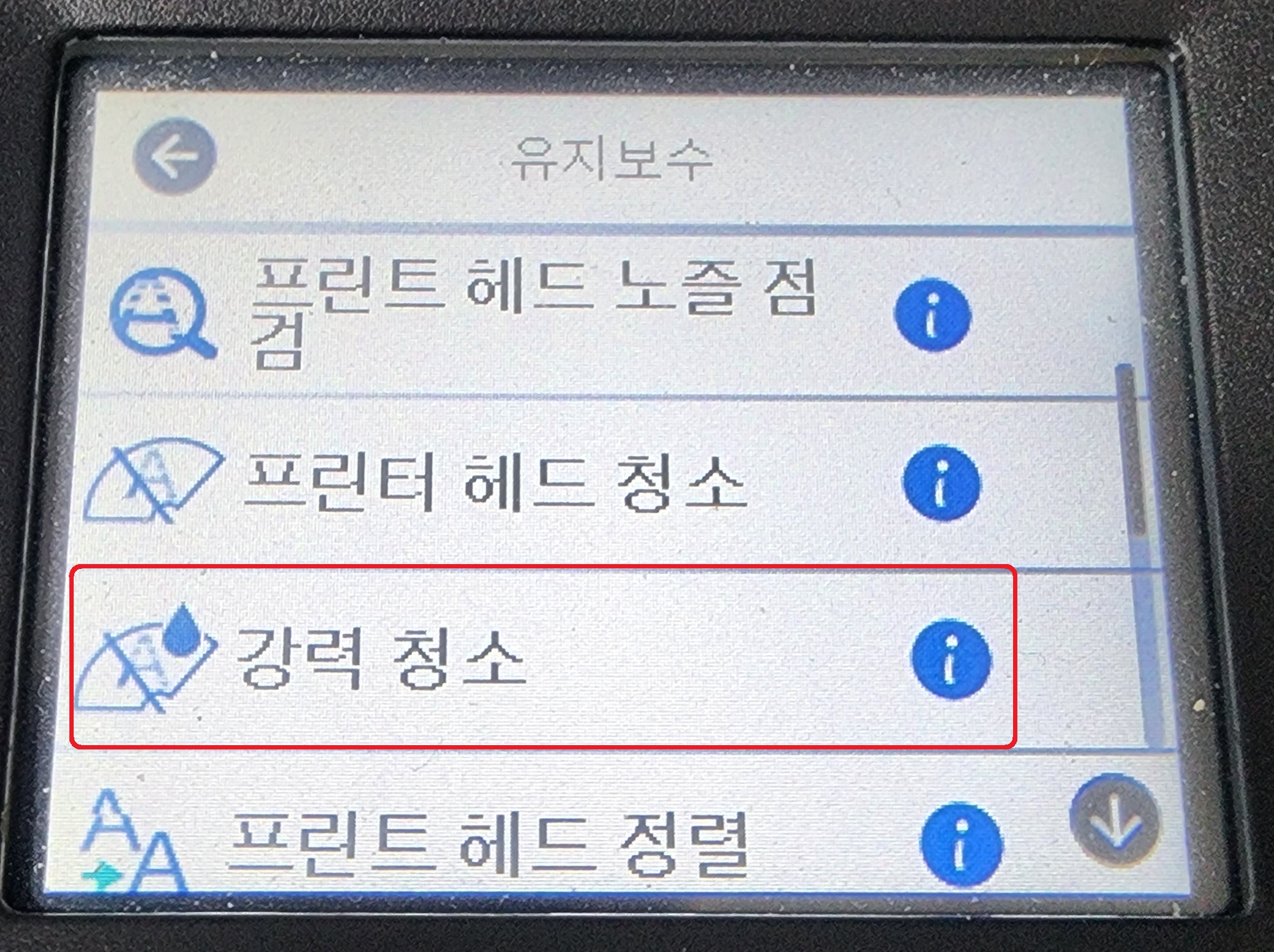 (엡손 메뉴얼에선 헤드청소 최대 3회 및 파워클리닝 1회 만을 권장한다고 하니 주의해야 함.